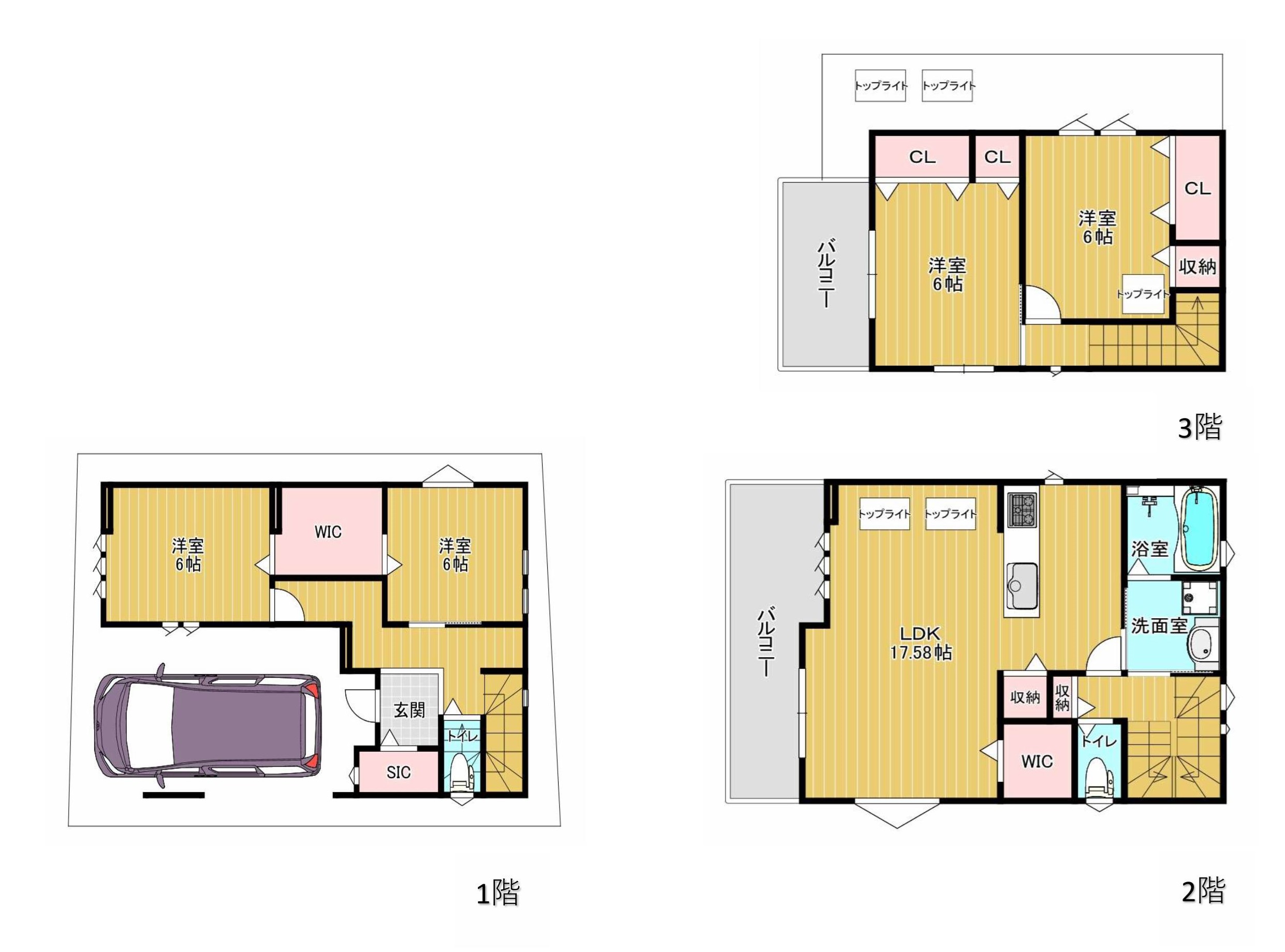 間取図 1階:37.26㎡ 2階:44.68㎡ 3階:28.35㎡ 合計:110.29㎡