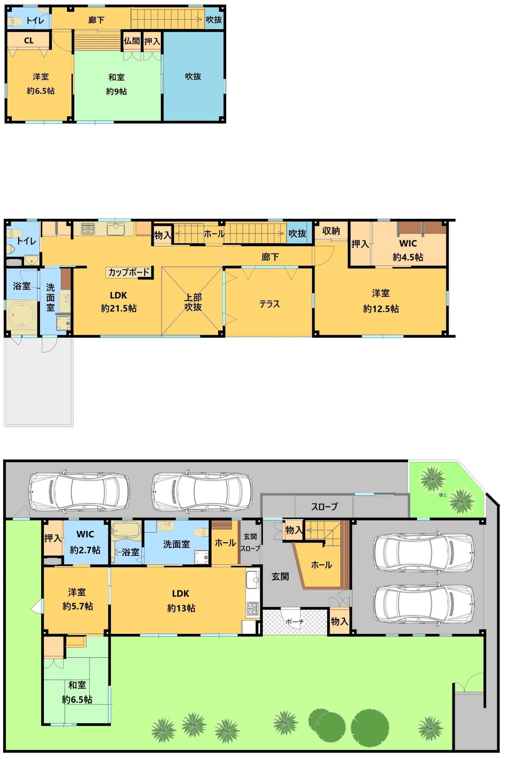 間取図 1階:110.73㎡ 2階:88.84㎡ 3階38.21㎡ 合計:237.78㎡
